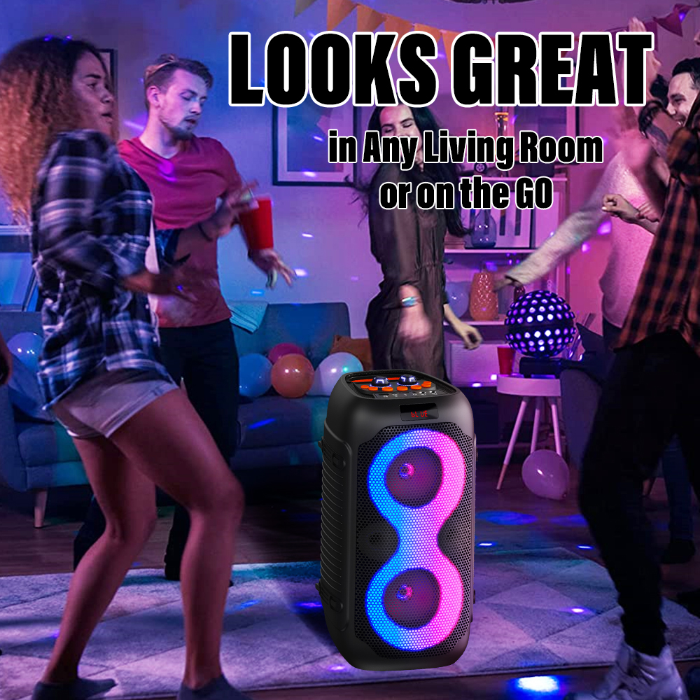 comes with a stunning light display feature that encircles the woofer's outer perimeter and illuminates the body's center ring. You may hear the music from your sight because the light brings out the beats in the song you are playing. There are five different types of lighting patterns available (rock, neon, club, flow, and ripple).